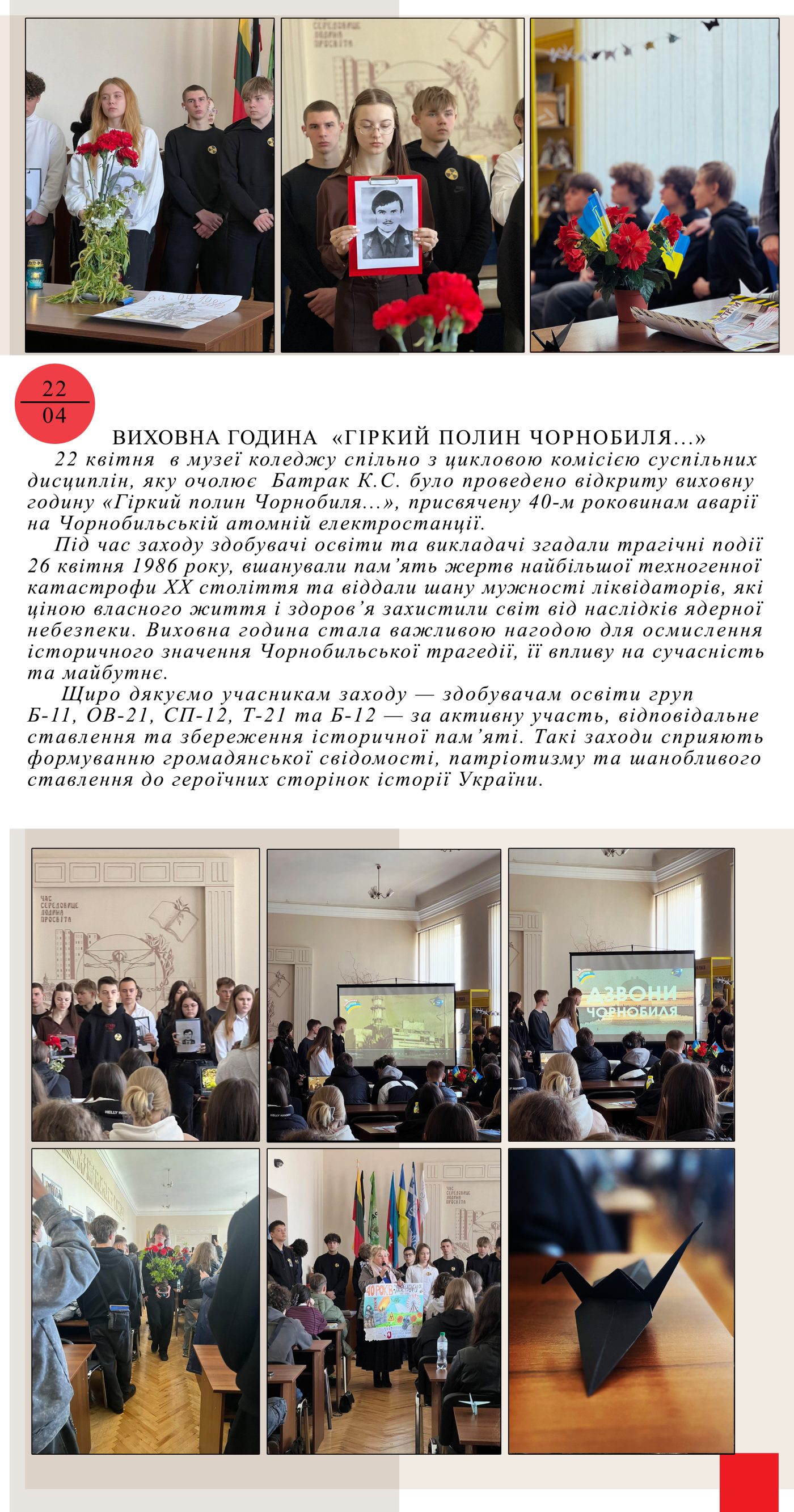Історико-просвітницька лекція-презентація “Чорнобиль – 40 років”