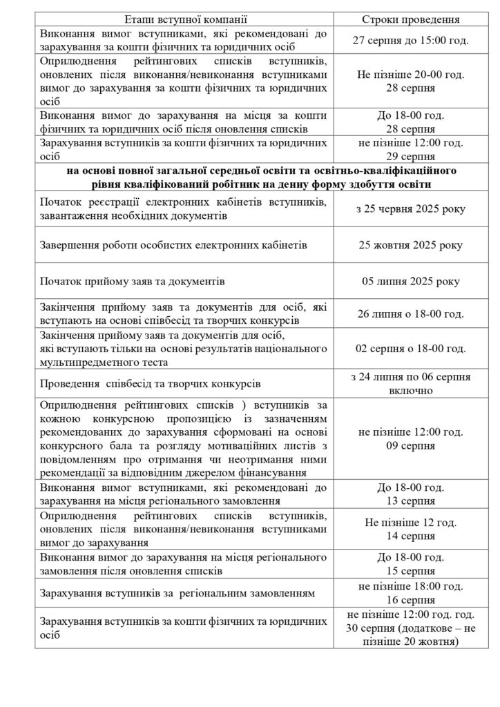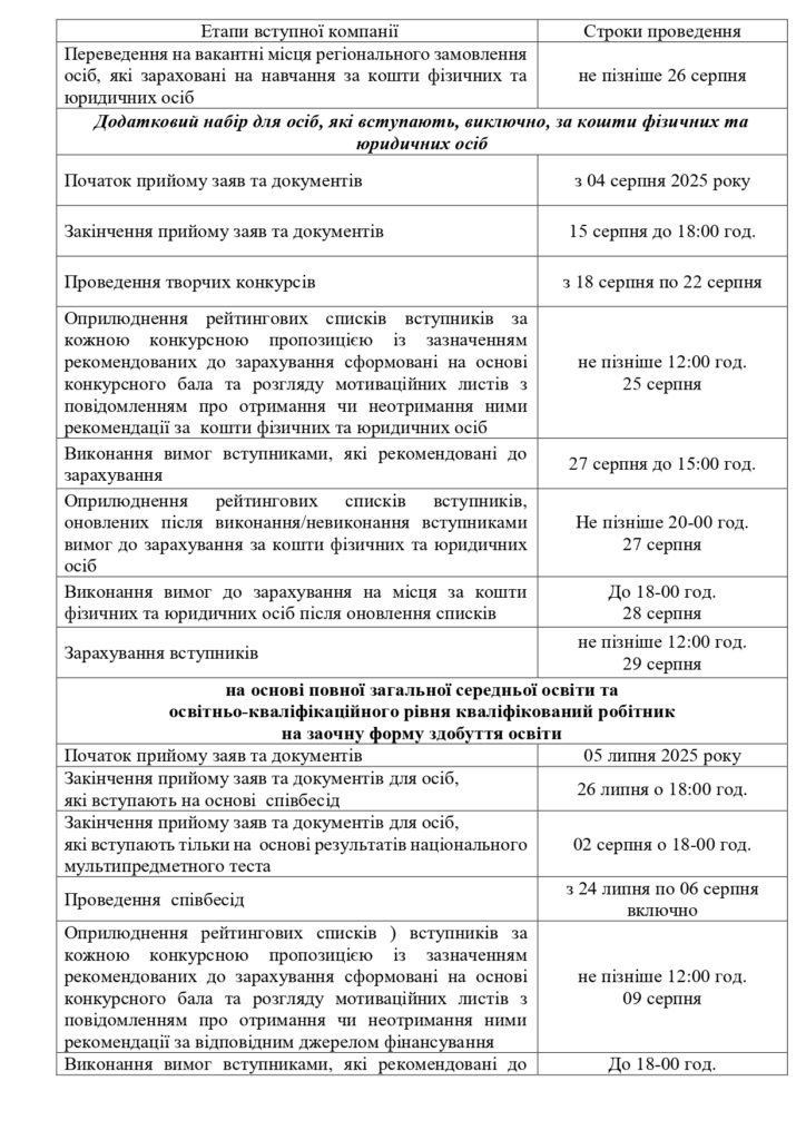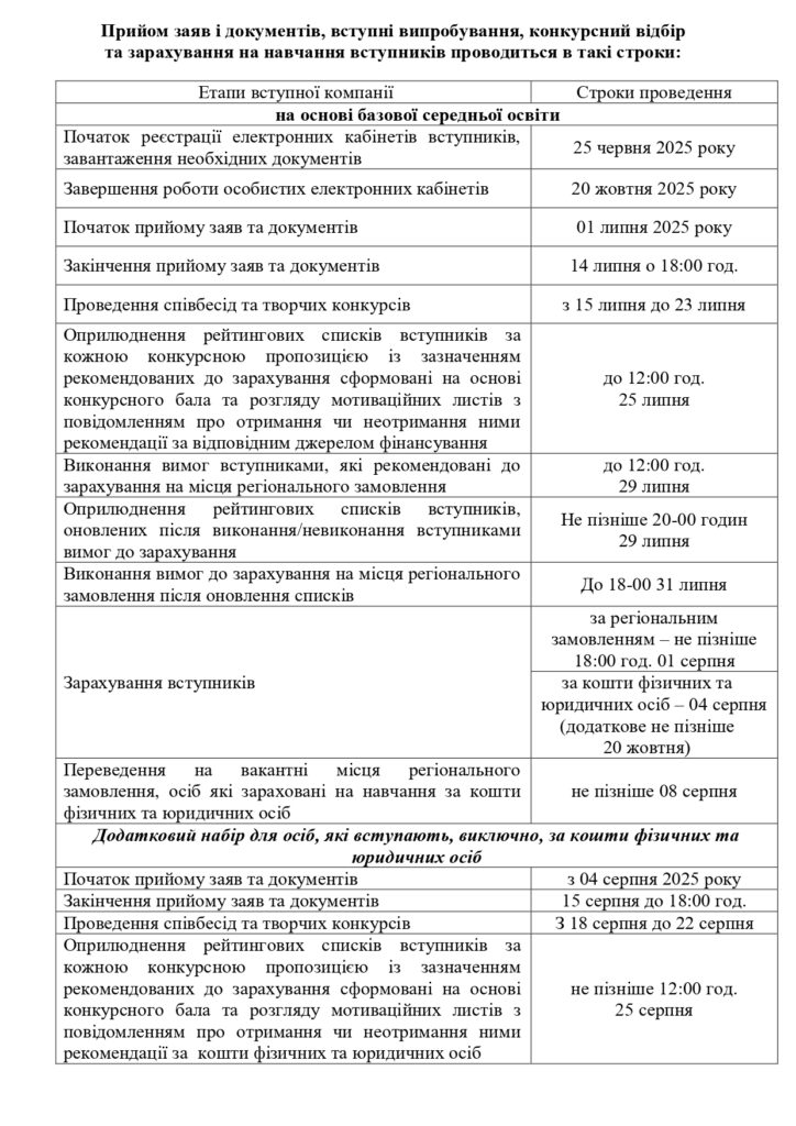 Порядок проведення співбесід та творчого конкурсу (зі змінами)