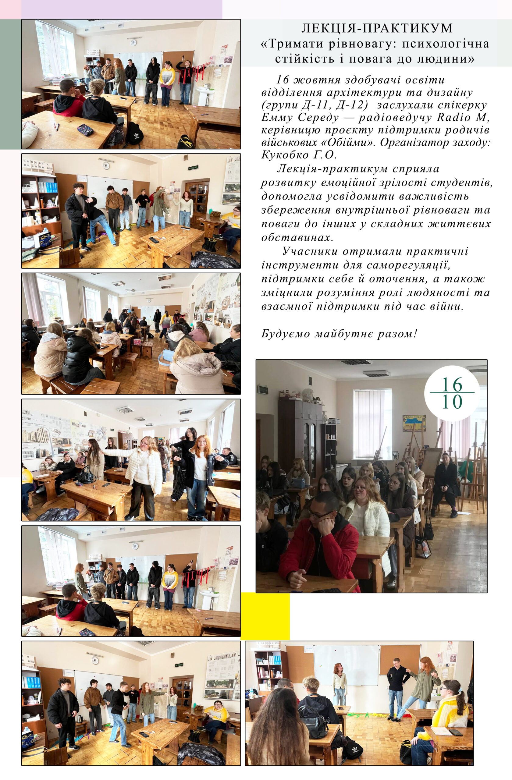 Лекція-практикум “Тримати рівновагу: психологічна стійкість і повага до людини”