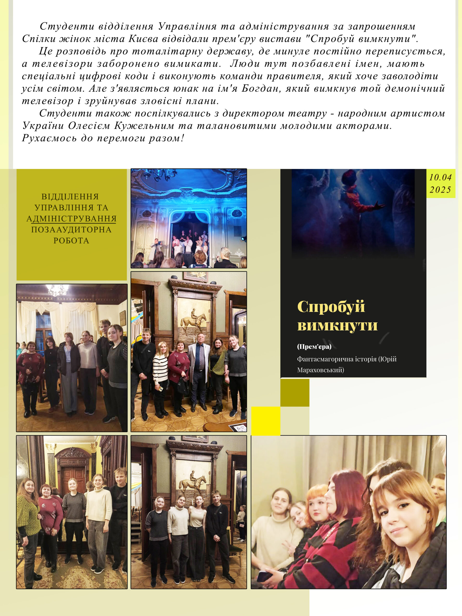 Відділення управління та адміністрування. Позааудиторна робота. Вистава “Спробуй вимкнути”