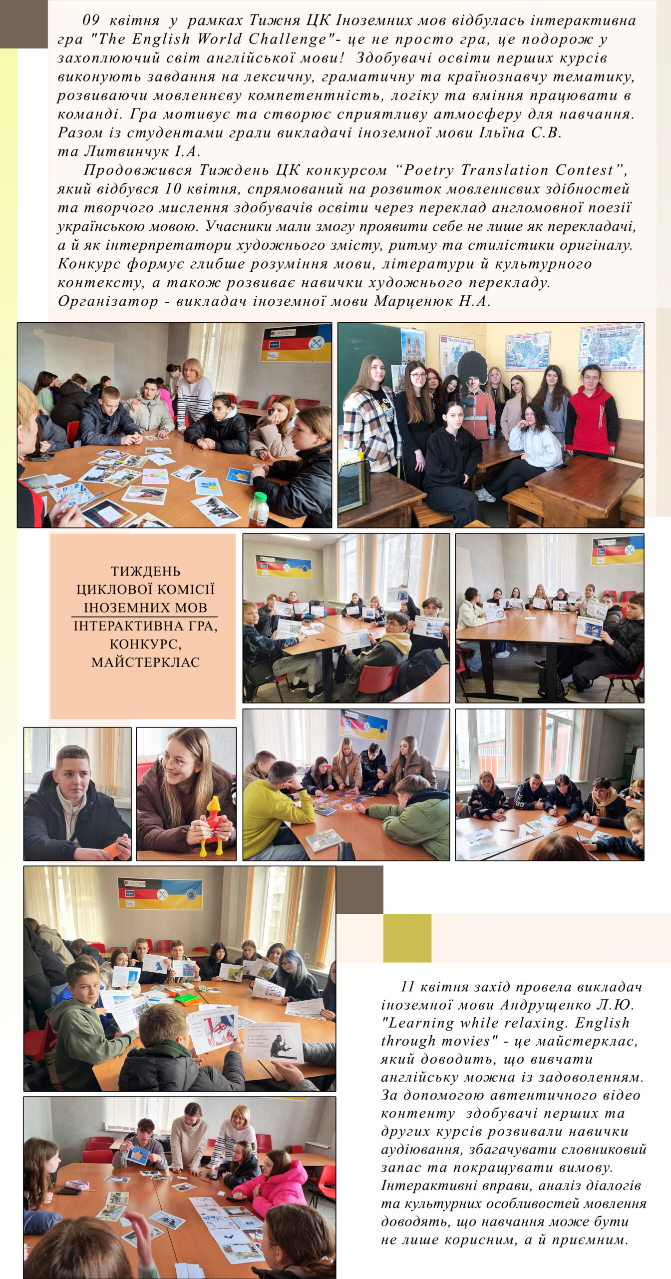 Тиждень ЦК Іноземних мов. Інтерактивна гра. Конкурс. Майстерклас