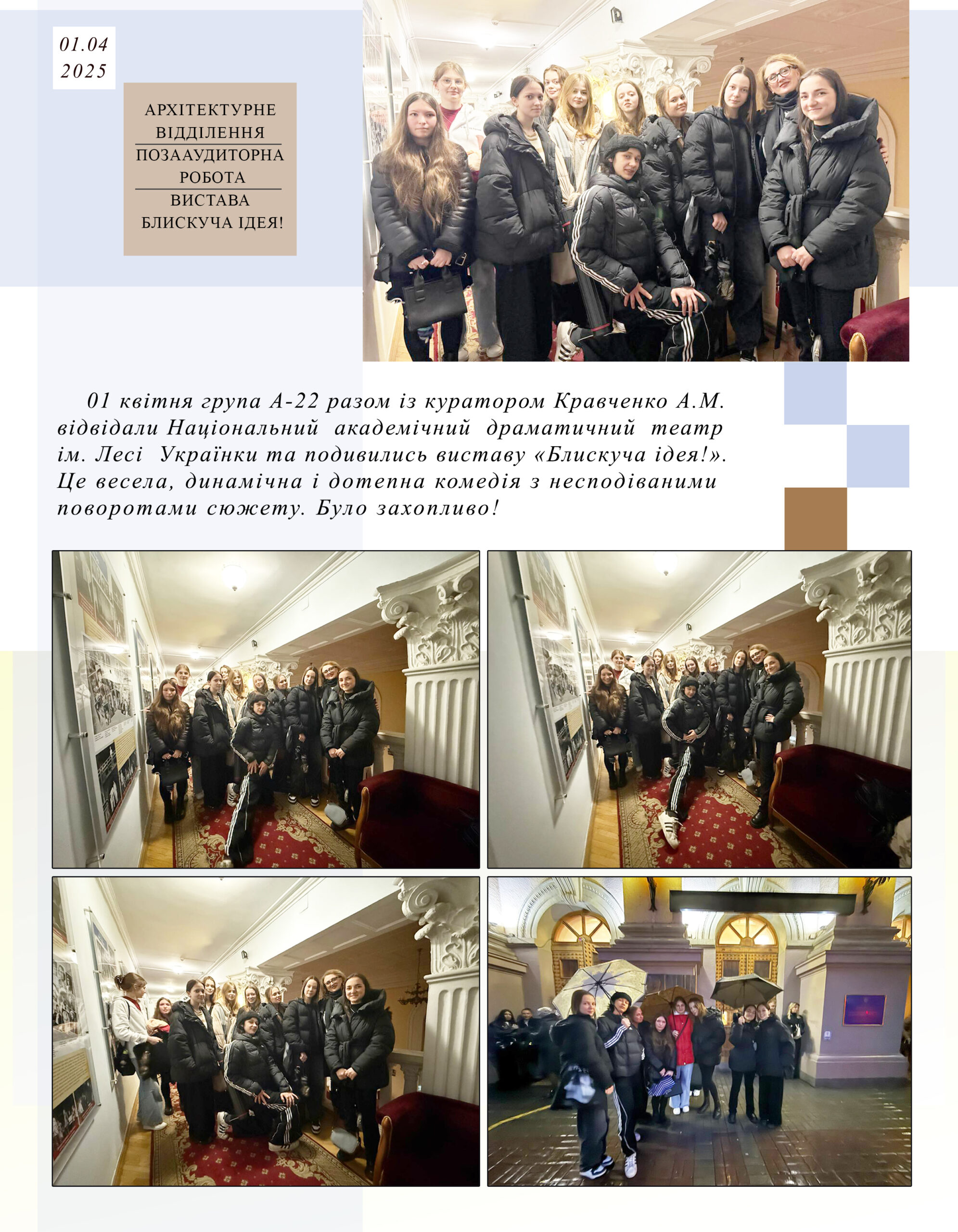 Вистава БЛИСКУЧА ІДЕЯ! Архітектурне відділення. Позааудиторна робота