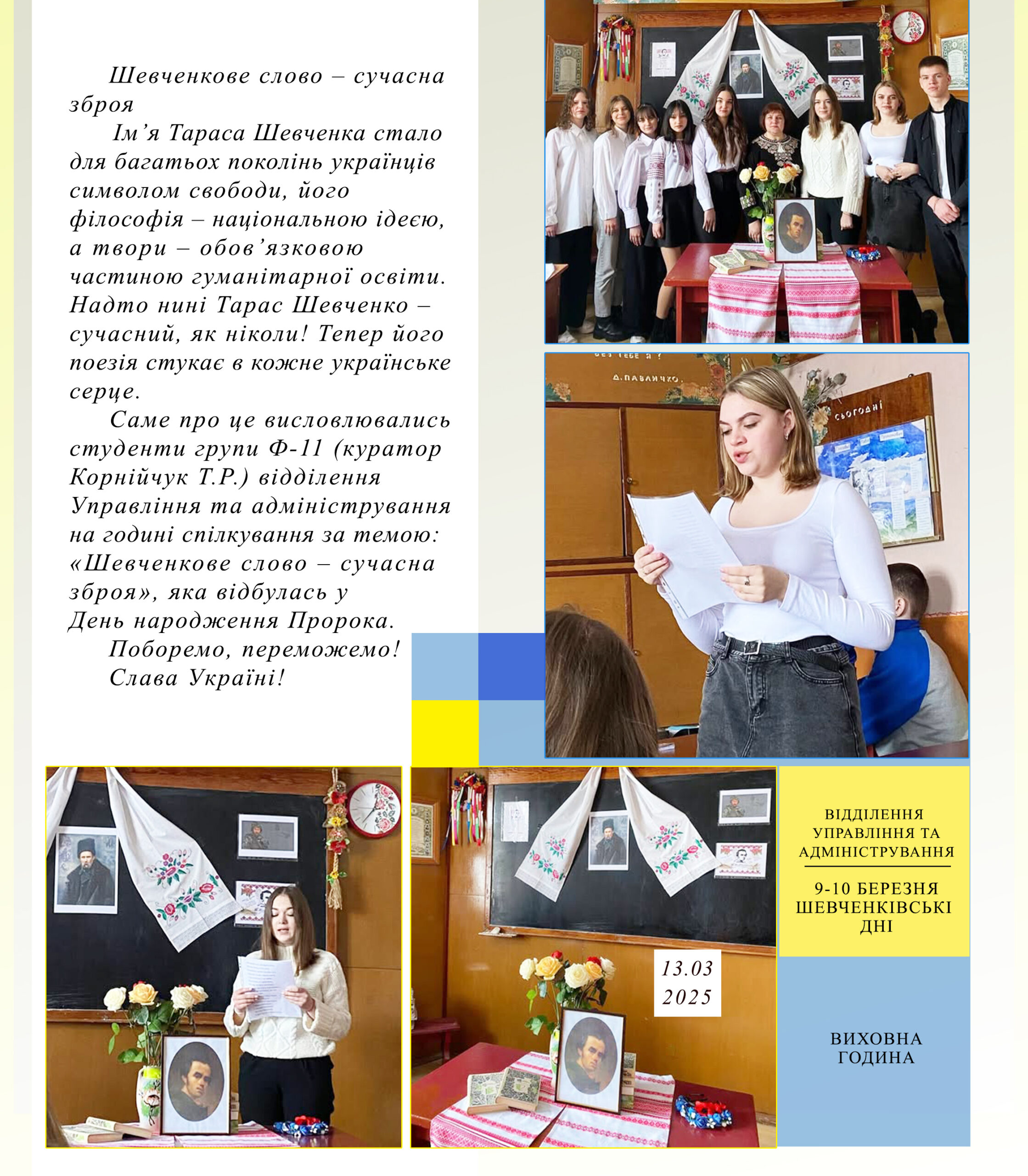Відділення Управління та адміністрування. Шевченківські дні