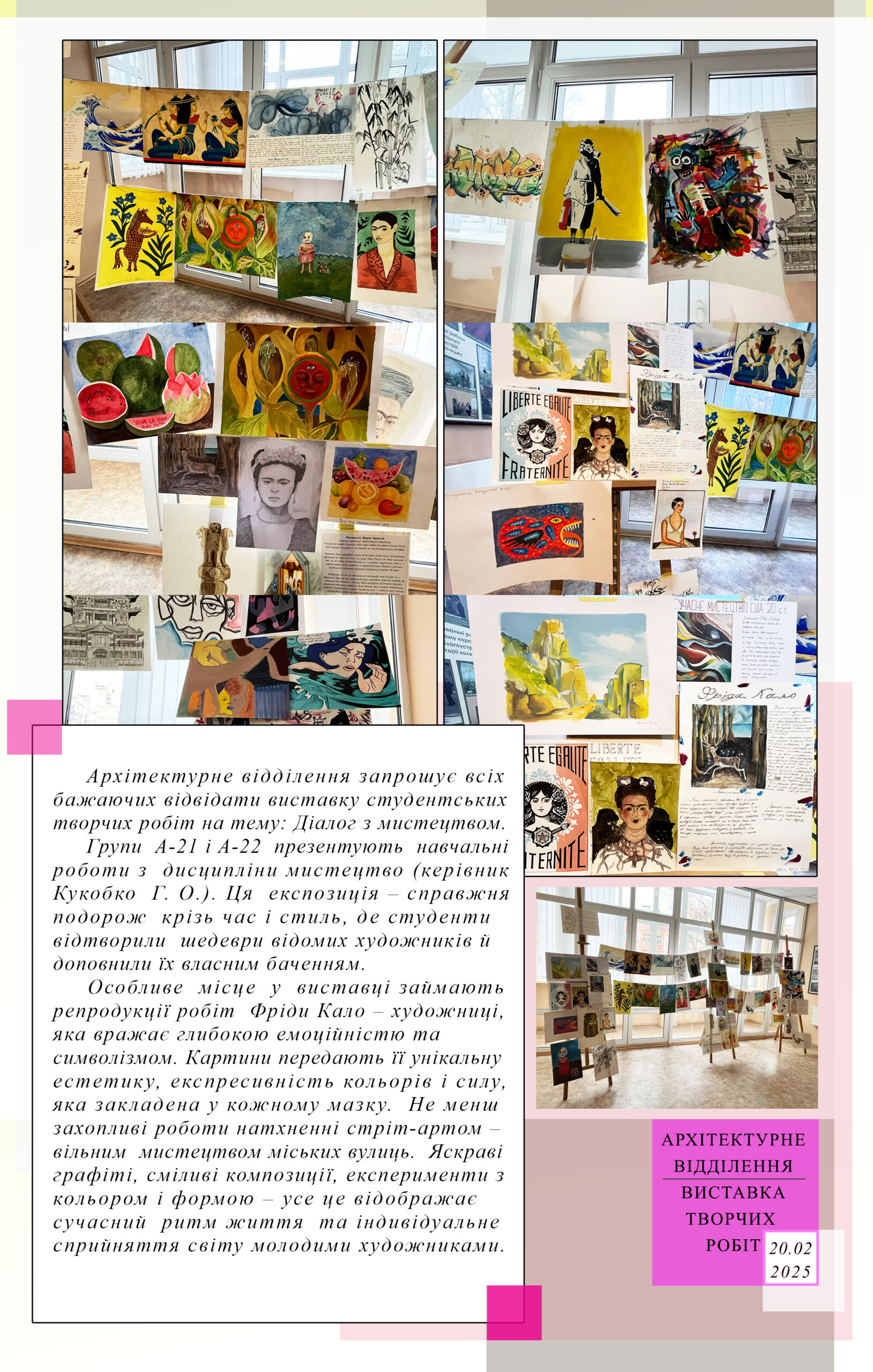 Виставка студентських творчих робіт на тему “Діалог з мистецтвом”