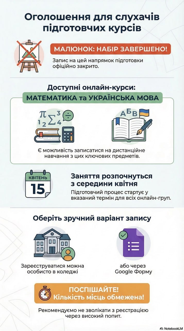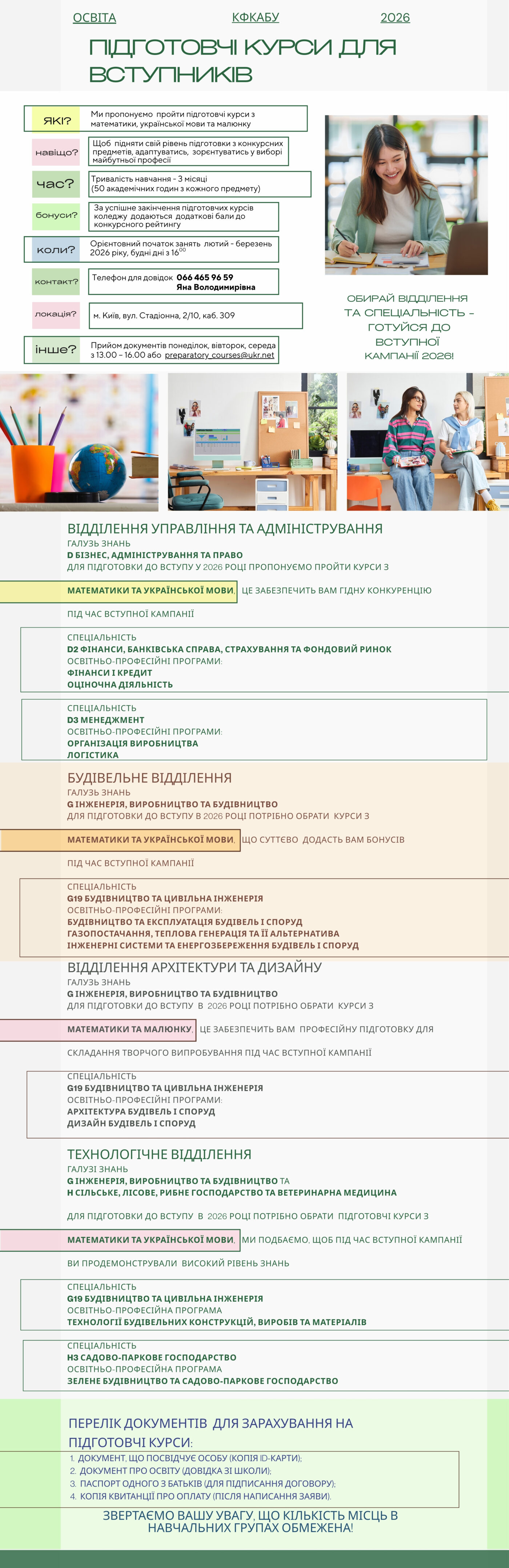 Підготовчі курси 2025-2026 навчальний рік Вступникам України Вступникам Зарубіжним Information for foreigs