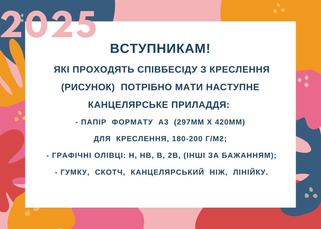 УВАГА!!! Вступникам, які проходять співбесіду з креслення (рисунок)