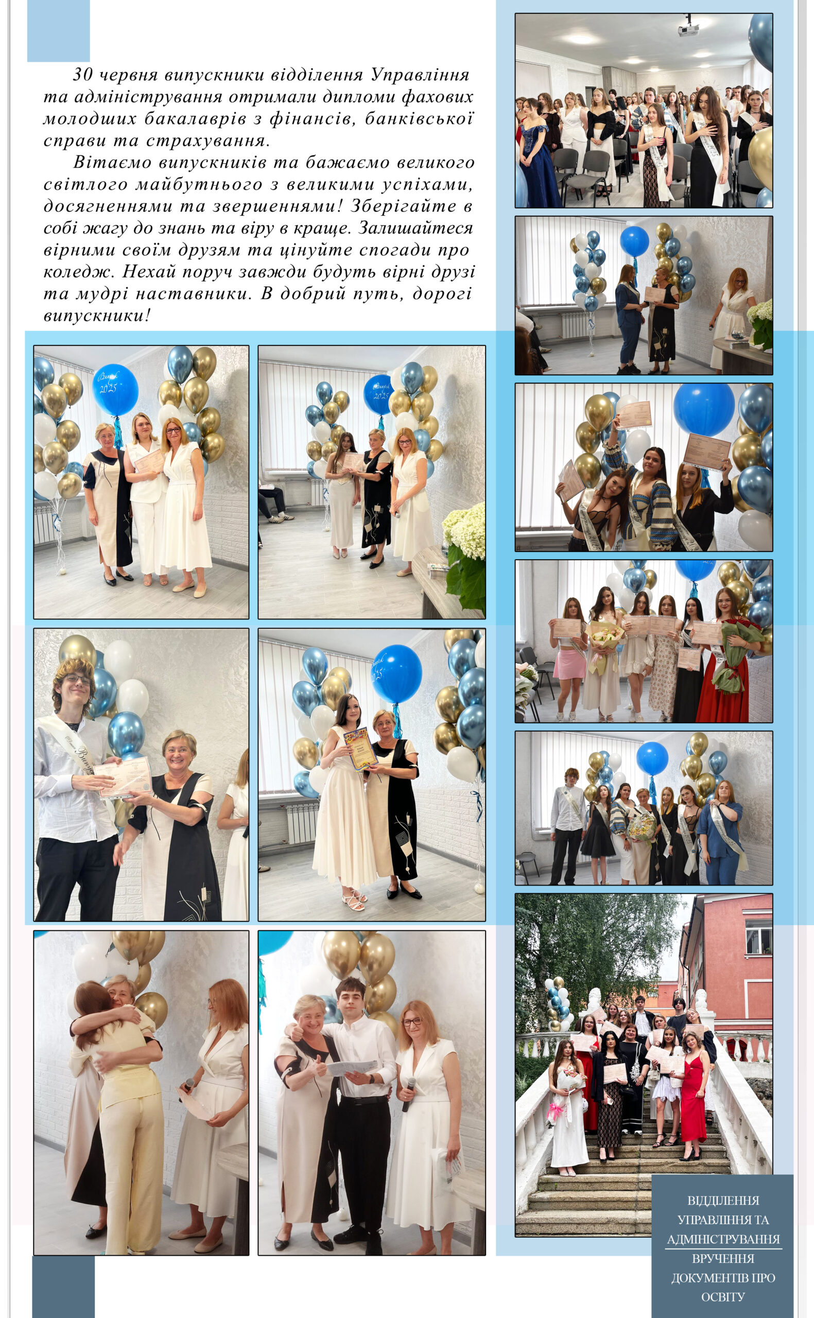 Відділення Управління та адміністрування. Вручення дипломів