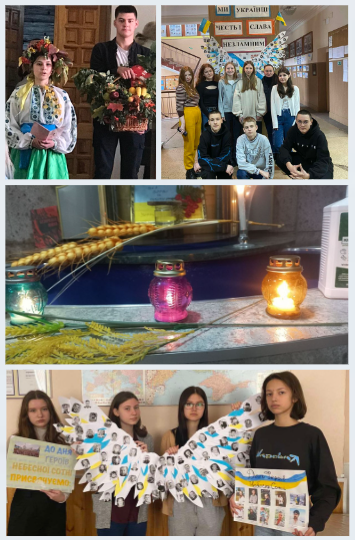 За участю студентського самоврядування коледжу постійно готуються виставки плакатів, патріотичні фото, створюються меморіальні стенди на вшанування пам’яті героїв, які віддали життя за Україну.